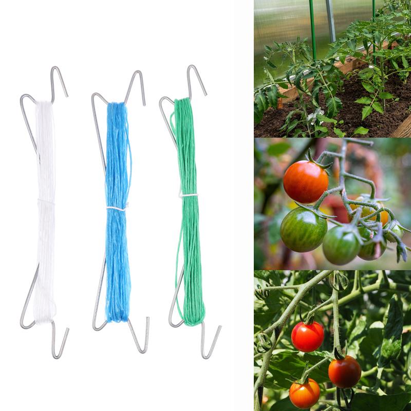 10Pcs Plant J-Hooks + 10M Rope + 20Pcs Clips Set | Tomato Grape Pepper Growing Support Clips | Garden Vine Plant Hanging