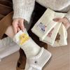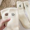 Thick Coral Fleece Socks for Autumn and Winter, Embroidered Puppy Cute Socks, Women's Mid-calf Socks, Fleece Warm Women's Socks