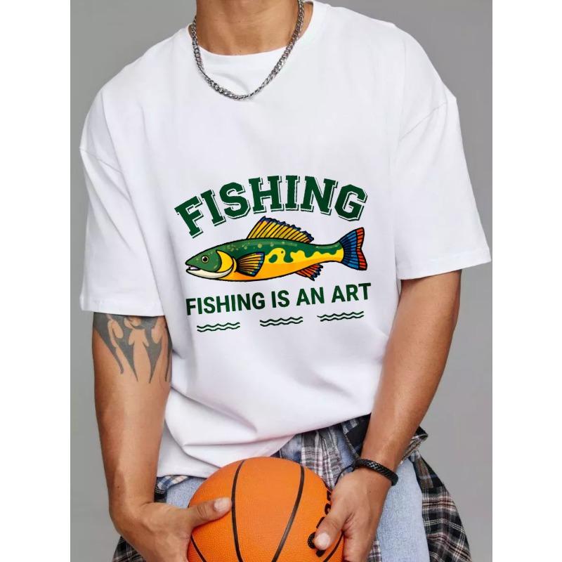 Fishing T Shirt White Fish and Text Design for Outdoor Activities