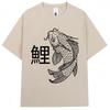 Koi Fish Lotus Flower Printed Black T Shirt for Men Casual Streetwear Summer Outfit with Chinese Calligraphy Design