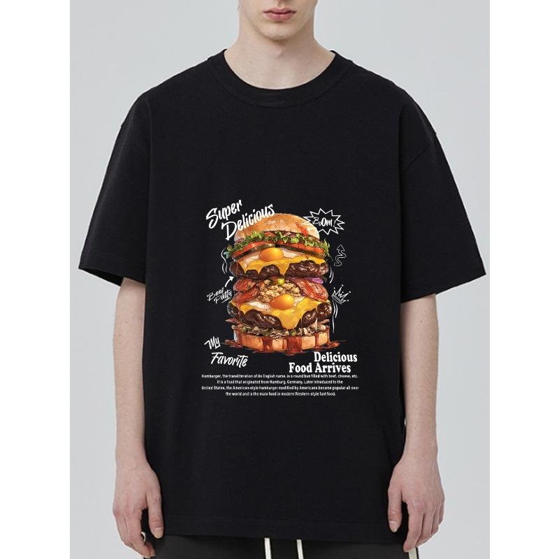 Black T-Shirt with Burger Graphic and Text Print for Casual Wear
