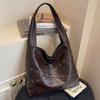 Niche tote bag retro texture casual large capacity shoulder bag soft leather lazy style high value fashionable bag women