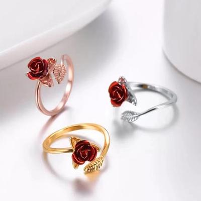 Γυναικείο δαχτυλίδι με κόκκινο τριαντάφυλλο και ρυθμιζόμενο σχήμα για την ημέρα του Αγίου Βαλεντίνου