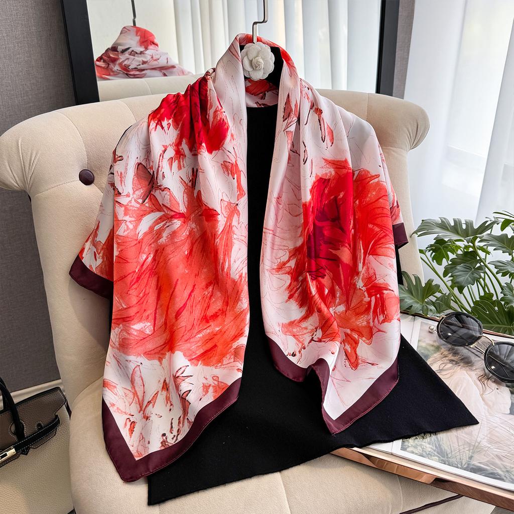 Print Head Scarf Women Four Seasons Foulard Satin Square Head Hijab Scarfs For Ladies Shawls 90*90 Silk Scarf Muslim Hijab