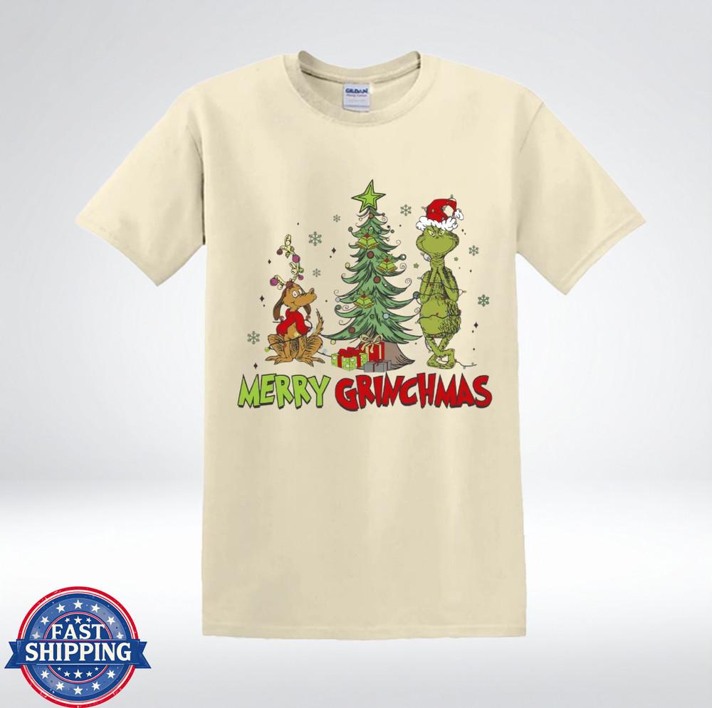 Merry Grinchmas Christmas Tree Funny Grumpy Green Holiday Graphic T-Shirt