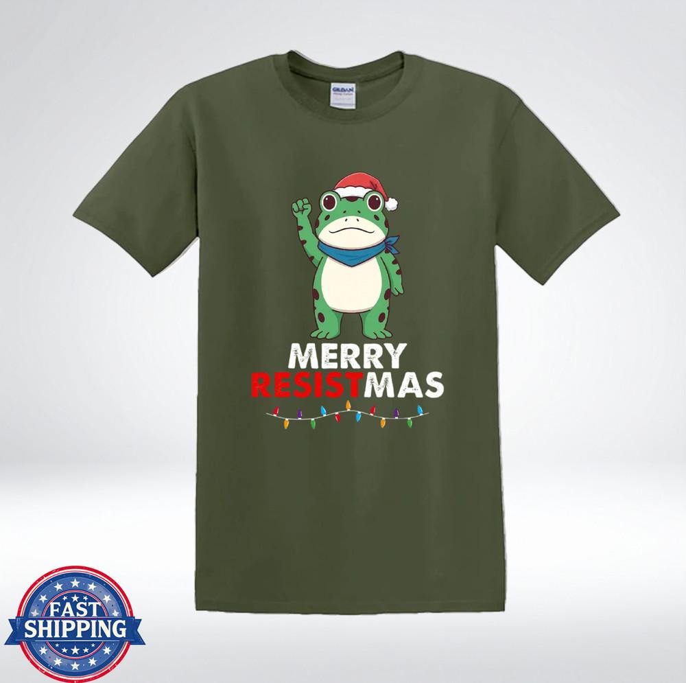 Merry Resistmas 2025 Frog Cartoon Christmas Lights Funny Holiday T-Shirt