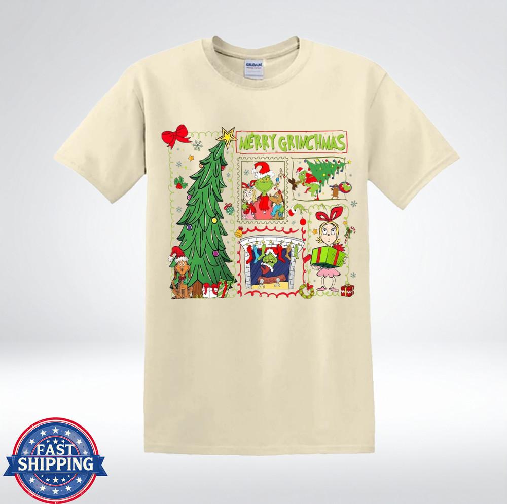 Cute Merry Grinchmas Xmas Comic Scene Vintage Holiday Art T-Shirt