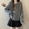 Women's Korean Style Casual Doll Collar Sweater Jacket Loose Beaded Sweater Cardigan Top