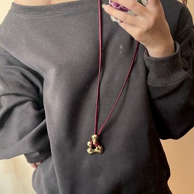 Leather Chain Wooden Pendant Necklace Boho Sweater Necklace Vintage Sweater Chain Gifts