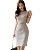 Allegra K Women's Boat Neck Ruched Bodycon Dress for Work or Office, Sleeveless Sheath Dress, Black, Size S