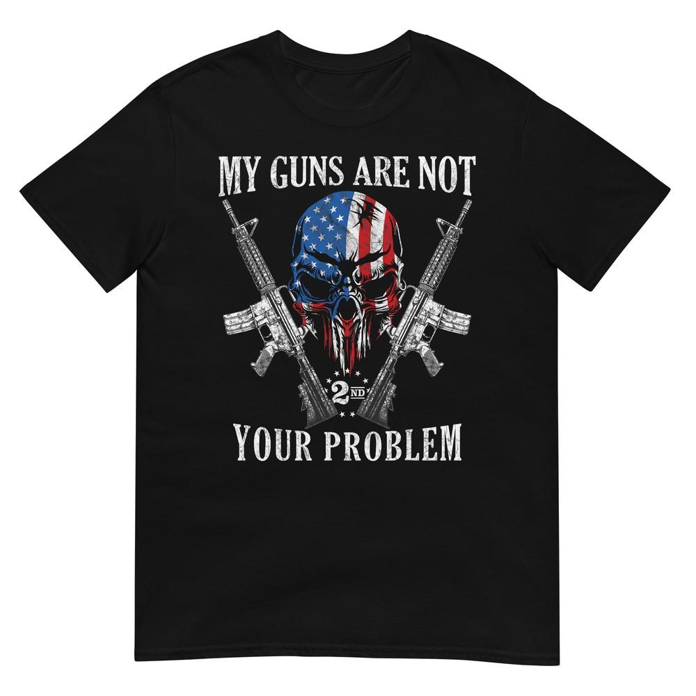 My Guns Are Not Your Problem AR15 American Flag 2A Skull T-Shirt