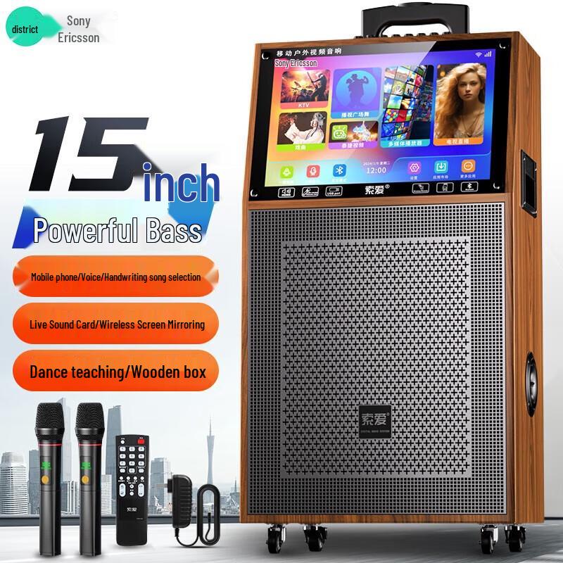 The Soaiy SA-D15C is a 15-inch active KTV karaoke speaker designed for outdoor use. It features a built-in display screen and comes with a microphone, making it perfect for karaoke sessions. This model has a durable wooden construction and includes a built-in battery for portability. Please note that it does not support Bluetooth, external storage, voice interaction, or call functions, and does not have wheels.