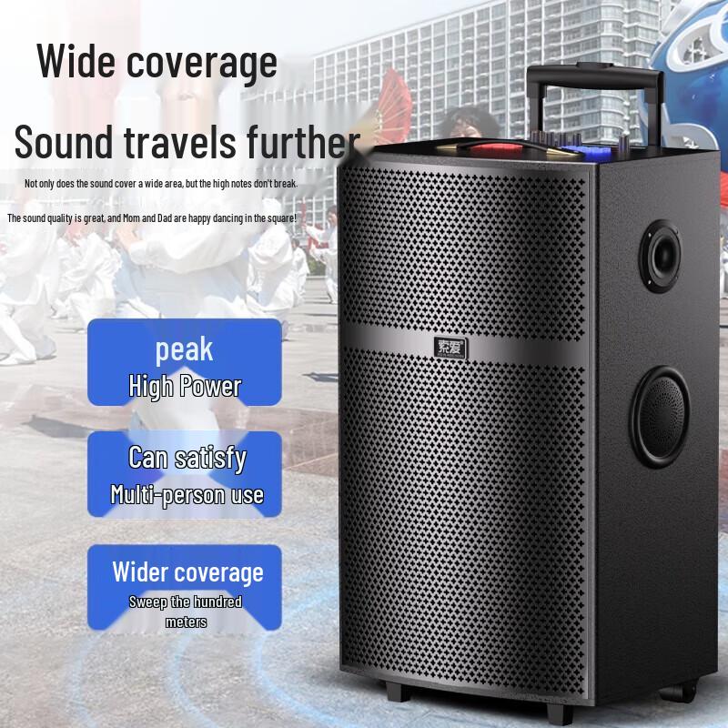 The Soaiy SA-X64 is a high-power 12-inch active KTV speaker and amplifier designed for outdoor karaoke and square dance events. It delivers heavy bass and comes equipped with dual microphones. This model features USB external storage reading for playback. Please note that it does not include Bluetooth connectivity, voice interaction, or call support, and does not have a built-in battery or wheels. It is constructed from durable plastic.
