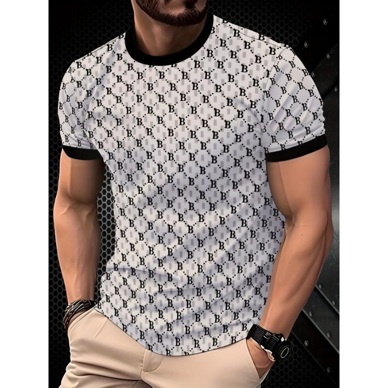 Men's Casual Short Sleeved T-shirt 3D Digital Letter Printed Summer Fashion Top