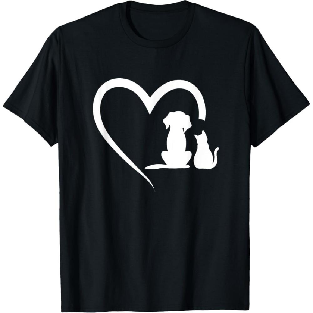 Dog Puppy and Baby Cat Heart - Animal Dog & Cat Heart T-Shirt for Men Women Girls Kids