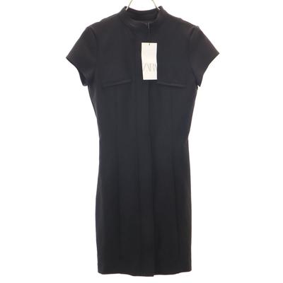 Αχρησιμοποίητο μίνι φόρεμα με κοντό μανίκι και μπροστινό φερμουάρ XS μαύρο Γυναικείο Μεταχειρισμένο