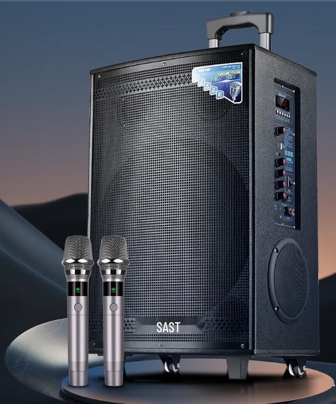This Shenke ST-1509 high-power outdoor trolley speaker delivers super loud audio, ideal for outdoor activities and square dancing. It features a built-in battery for portability, supports TF card playback, and includes Bluetooth 5.0 connectivity. A microphone is also included for versatile use. Its robust plastic design ensures durability.