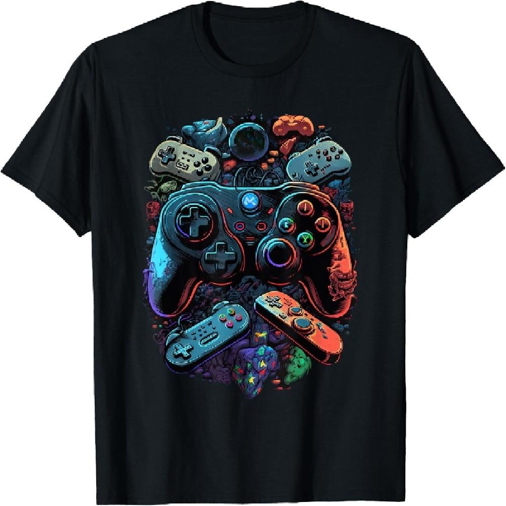 Black Gaming T-Shirt, Unisex-Adults & Kids, Long Sleeve, Small, Black