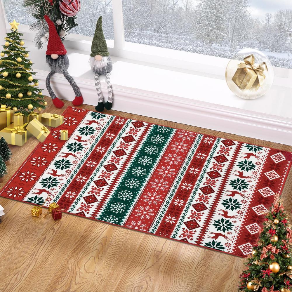 VIKAMA Christmas Entrance Rug Soft Bedroom & Kitchen Mat Geometric Non-Slip Front Door Doormat Christmas Home Decor