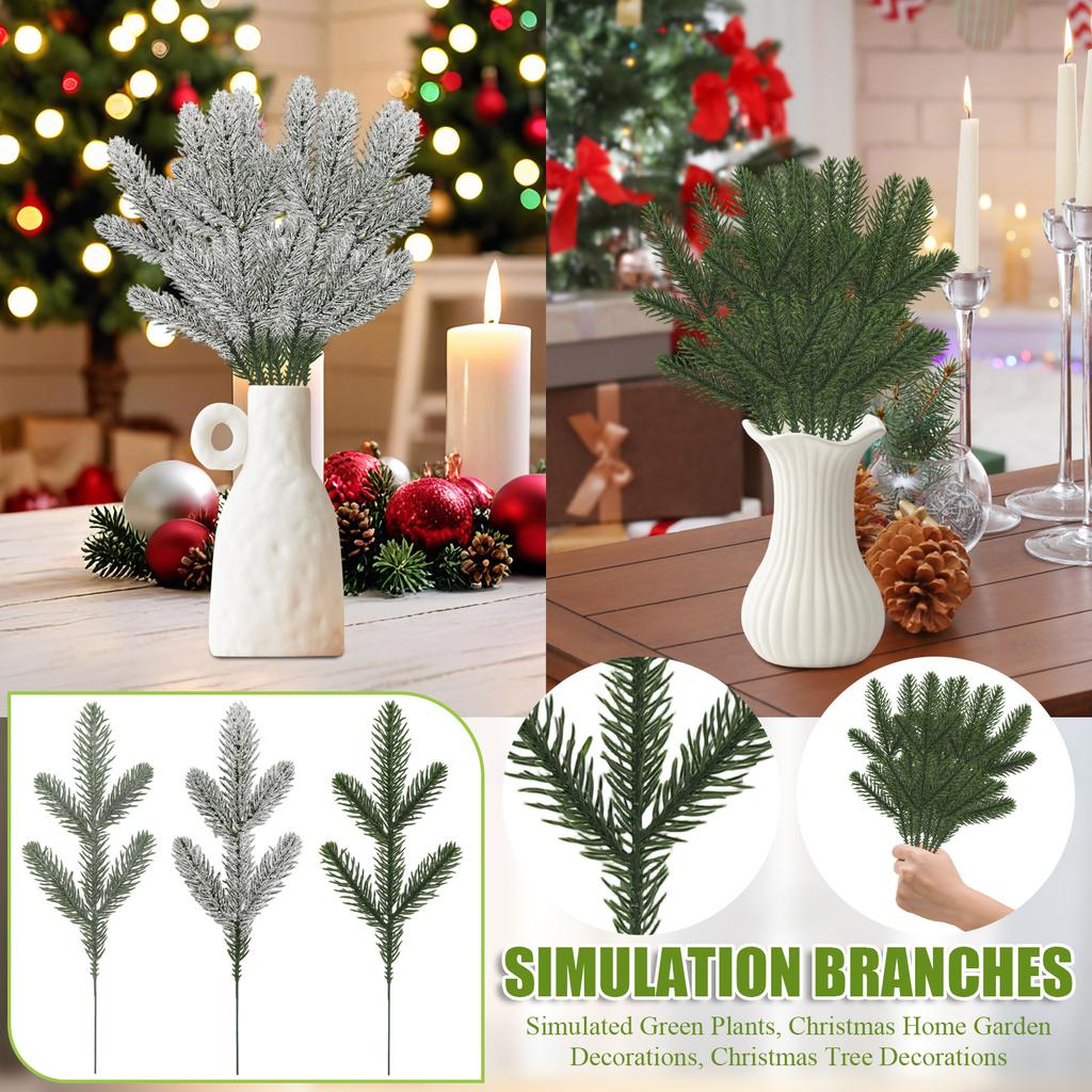 24pcs Simulated Christmas Branches, Simulated Green Plants, Christmas Home Garden Decorations, Christmas Tree Decorations