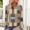 Women's Casual And Fashionable T-shirt, Vintage Geometric Print, Round Neck, Long Sleeves.