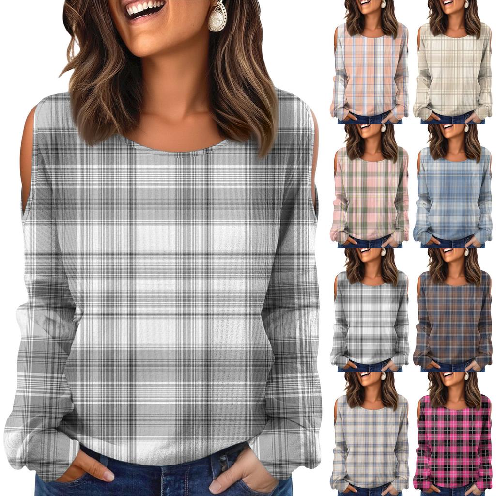 Women's Winter Oversized T-Shirt Fashionable Off-the-Shoulder Round Neck Vintage Floral Print Pullover Long-Sleeved Top