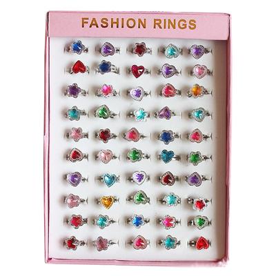 12 τμχ/σετ Παιδικό δαχτυλίδι Όμορφο πολύχρωμο σετ δαχτυλίδι Diamante Δώρο με κουτί σε σχήμα καρδιάς για κορίτσι Παιδί