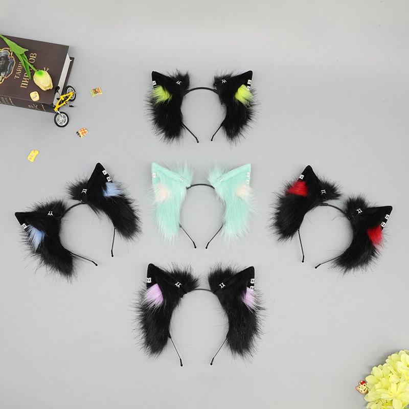 New Lolita Faux Fur Cat Ear Headband Anime Costume Plush Hair Hoop for Music Festival Halloween Accessories Party Cosplay Props