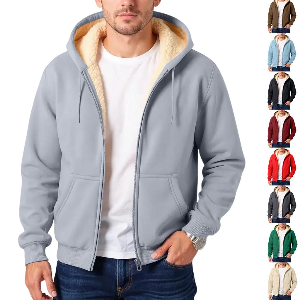Men's Fleece-lined, Warm, Versatile, Casual, Thick Hooded Sweatshirt Jacket