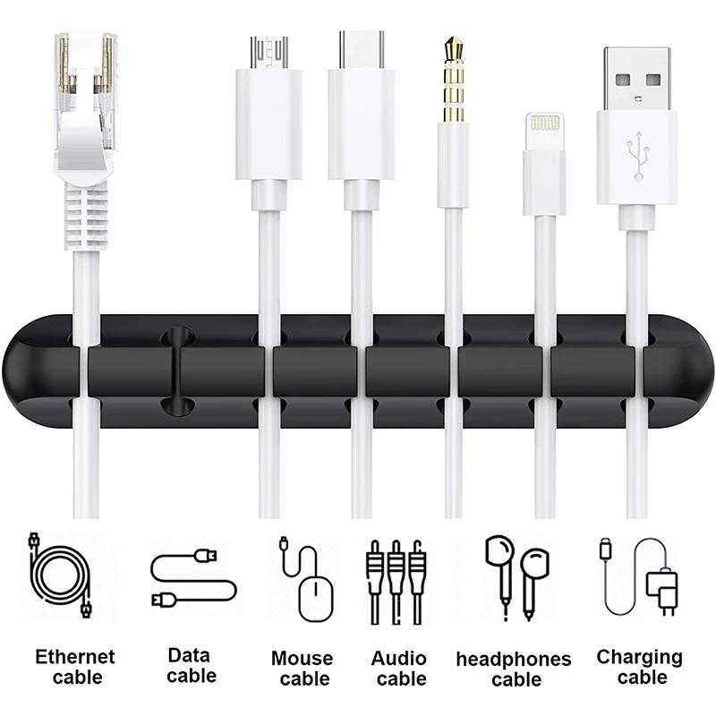 3/5 Clips Adhesive Silicone Cable Winder Desktop Wire Wrapped Cord Cable Holder Desk Set Table Organizer Office Supplies