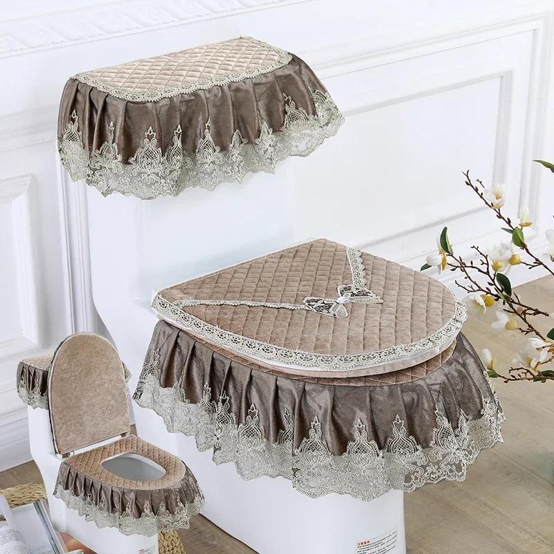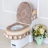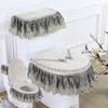 3PCS Velvet Skirt Style Toilet Mat Embroidered Lace Decorated Toilet Seat Mat Printed Dust Cover of Toilet Closestool