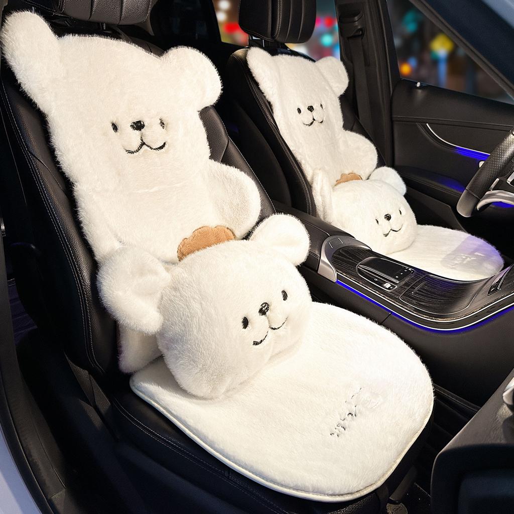 Car Seat Cushion with Winter Plush Thick Cushion Cartoon Cute Bear Car Seat Pillow Lumbar Support Pillow Interior Accessories