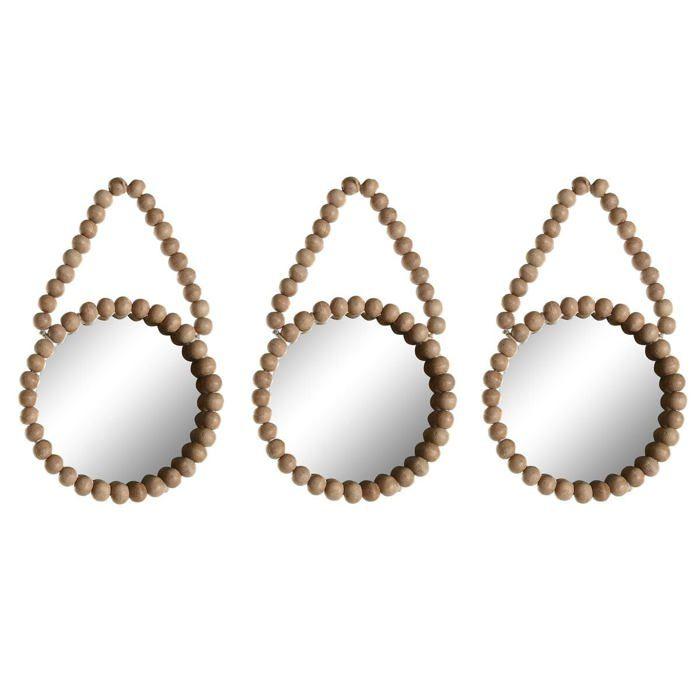 Lot de miroirs en bois naturel - Home ESPRIT - 3 pièces - 15x1x24 cm - Multicolore - Montage mural - Verre Scandi