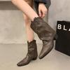 Spring and Autumn New Retro Windproof Long tube Boots with Thick Heels Riveted Pants Versatile Pointed Boots