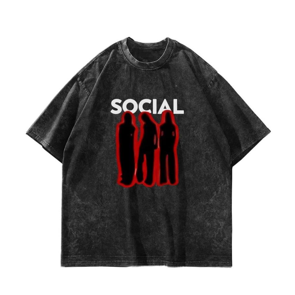 Vintage Social Character Silhouette Printed Short Sleeve T-shirt Loose fit Unisex Trendy Brand Style Daily Casual Versatile Cotton Top