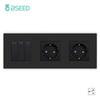 BSEED 1/2/3Gang Mechanical Button Switches 2Way For Stairs Plus EU Sockets USB Type-c Power Ports Matte Plastic Frames Black