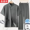 Ανδρικό καλοκαιρινό κοντομάνικο πουκάμισο με όρθιο γιακά, λεπτό παντελόνι και κοστούμι για άνδρες μέσης και ηλικιωμένους