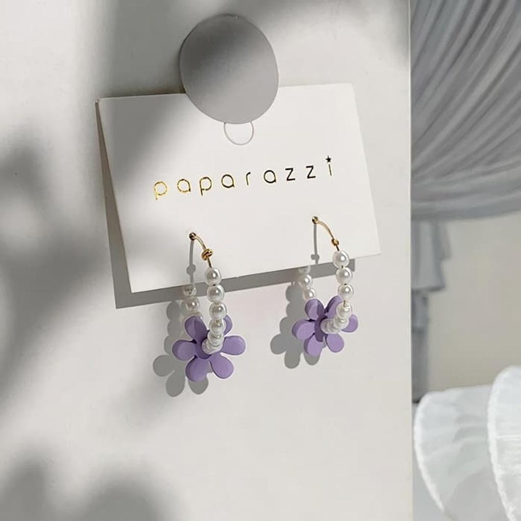 Silver Needle Pearl Freshwater Earrings with Chain Purple Flower