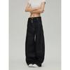 Black of Exit American Simple Basic Style Dark Blue Jeans New Retro Straight-Leg Floor-Length Pants