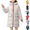 New cotton-padded clothes women's medium and long hooded contrasting colors thickened fashionable loose cotton clothes large pocket jacket