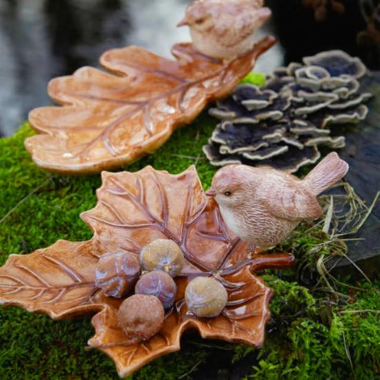 Brown Leaf Ceramic Plate with Bird Design Handcrafted Decorative Tray for Jewelry And Trinkets Thanksgiving Party Supplies
