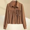 New Chinese Women's Style Shirt Short Design Puff Sleeve Chic Top Waist-closed Long Sleeves