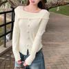 Double ruffle edge flared sleeve knitted sweater women's one-word shoulder backless tight elastic split-ended sweater