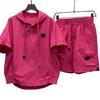 Perfect for summer, the set features a light and breathable design with sun protection. The hooded short-sleeved top and shorts come in a simple solid color, ideal for a casual and relaxed style.