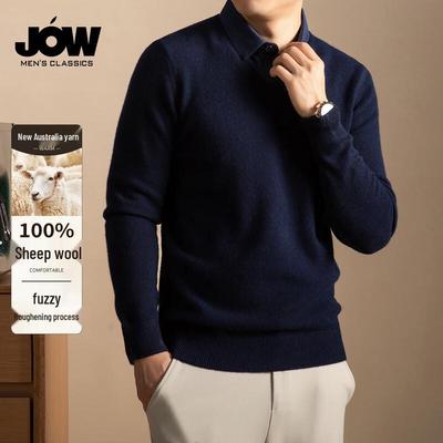 JOW Men's Jacquard Merino Wool Blend Pullover Sweater