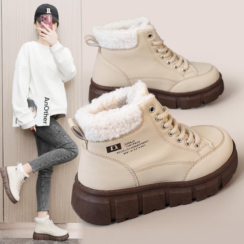 158 new autumn and winter Korean casual women's velvet medium-top version warm and heightening cotton shoes color-matching snow boots