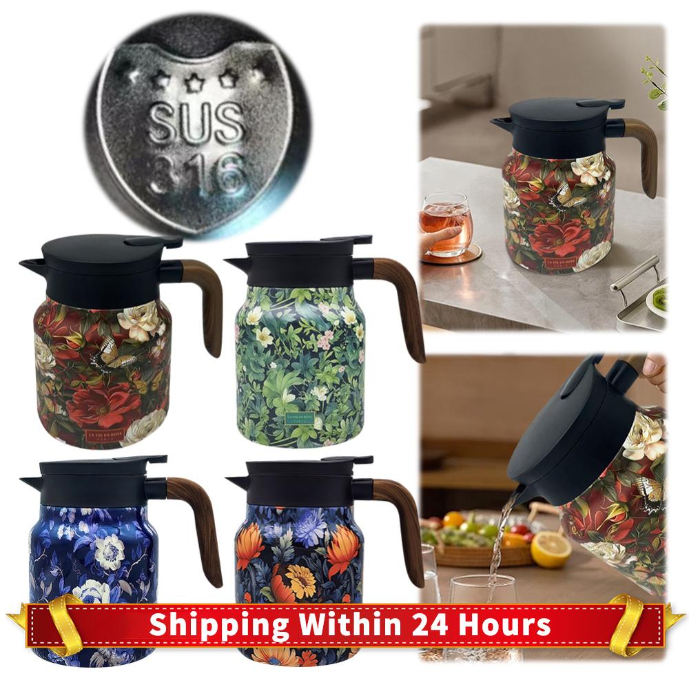 1000ml Vintage Floral Tea Kettle Stainless Steel Stewed Teapot Built-in Infuser Tea Separation Water Bottle for Kitchen