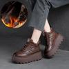 Fashion GKTINOO Loafers for Women 7cm Retro Genuine Leather Ankle Boots British Autumn Winter Plush Moccasins Rubber Soled Flats Shoes