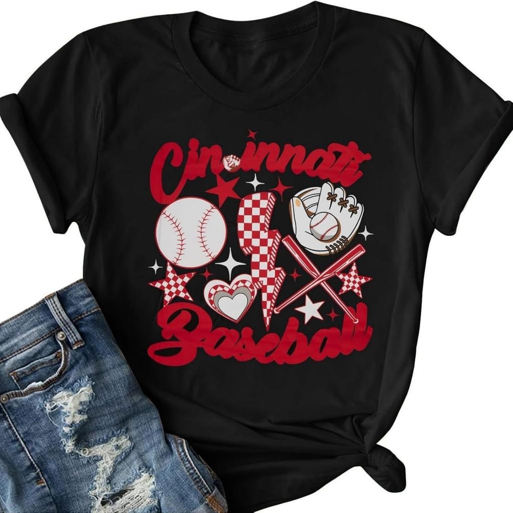 ALLTB Baseball Shirt Women Game Day T-Shirt Baseball Mom Shirts Sport Season Shirt Baseball Graphic Tee Tops