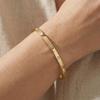 Κομψή μεταλλική κατασκευή: Κατασκευασμένο από μέταλλο υψηλής ποιότητας, αυτό το βραχιόλι διαθέτει ένα δημοφιλές σχέδιο που αποπνέει απλό αλλά εκλεπτυσμένο ταμπεραμέντο.. Η λεία επιφάνεια που επιτυγχάνεται μέσω μιας εξαιρετικής διαδικασίας ηλεκτρολυτικής επιμετάλλωσης εξασφαλίζει ανθεκτικότητα και εκλεπτυσμένη εμφάνιση, καθιστώντας το ένα διαχρονικό αξεσουάρ για κάθε συλλογή.